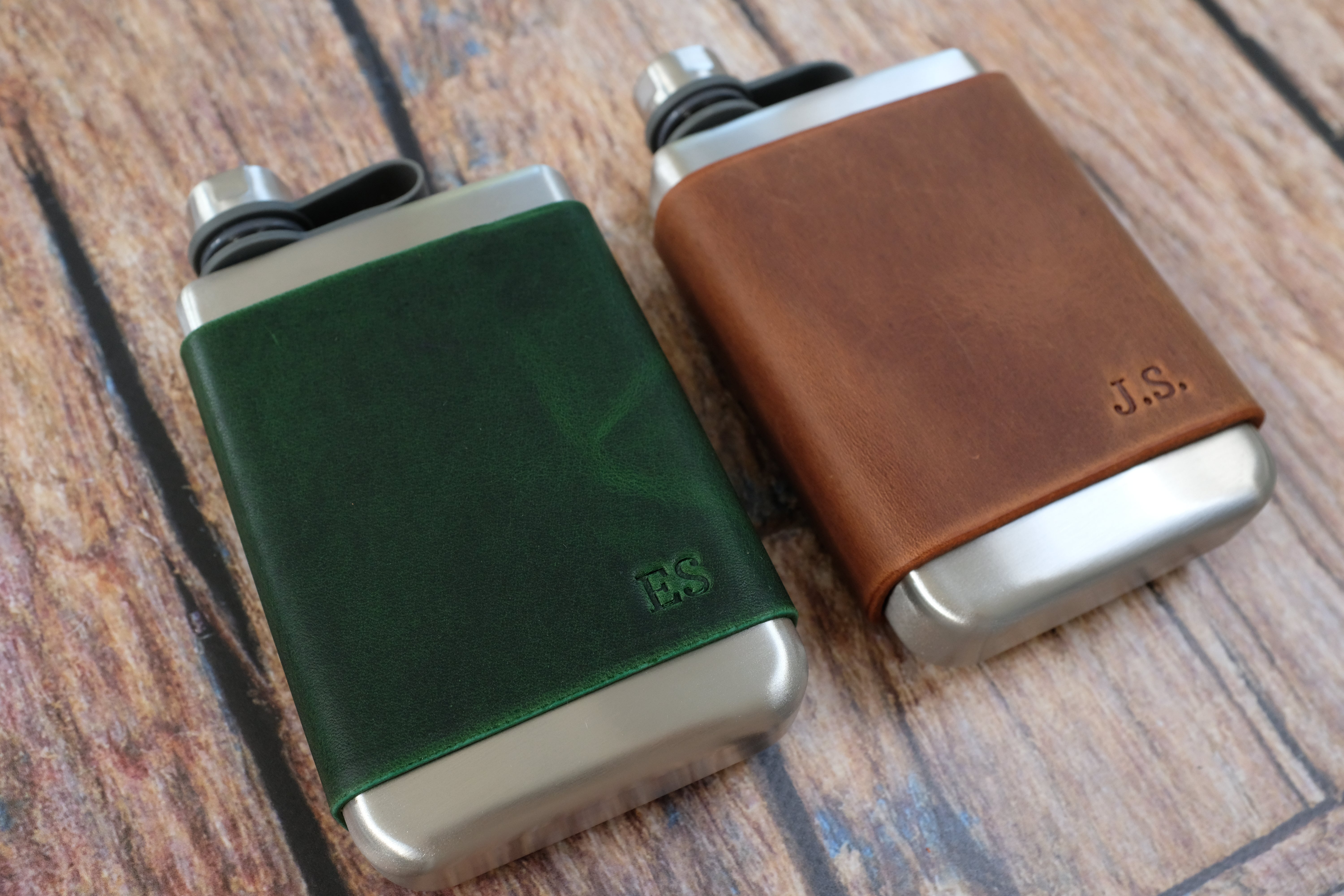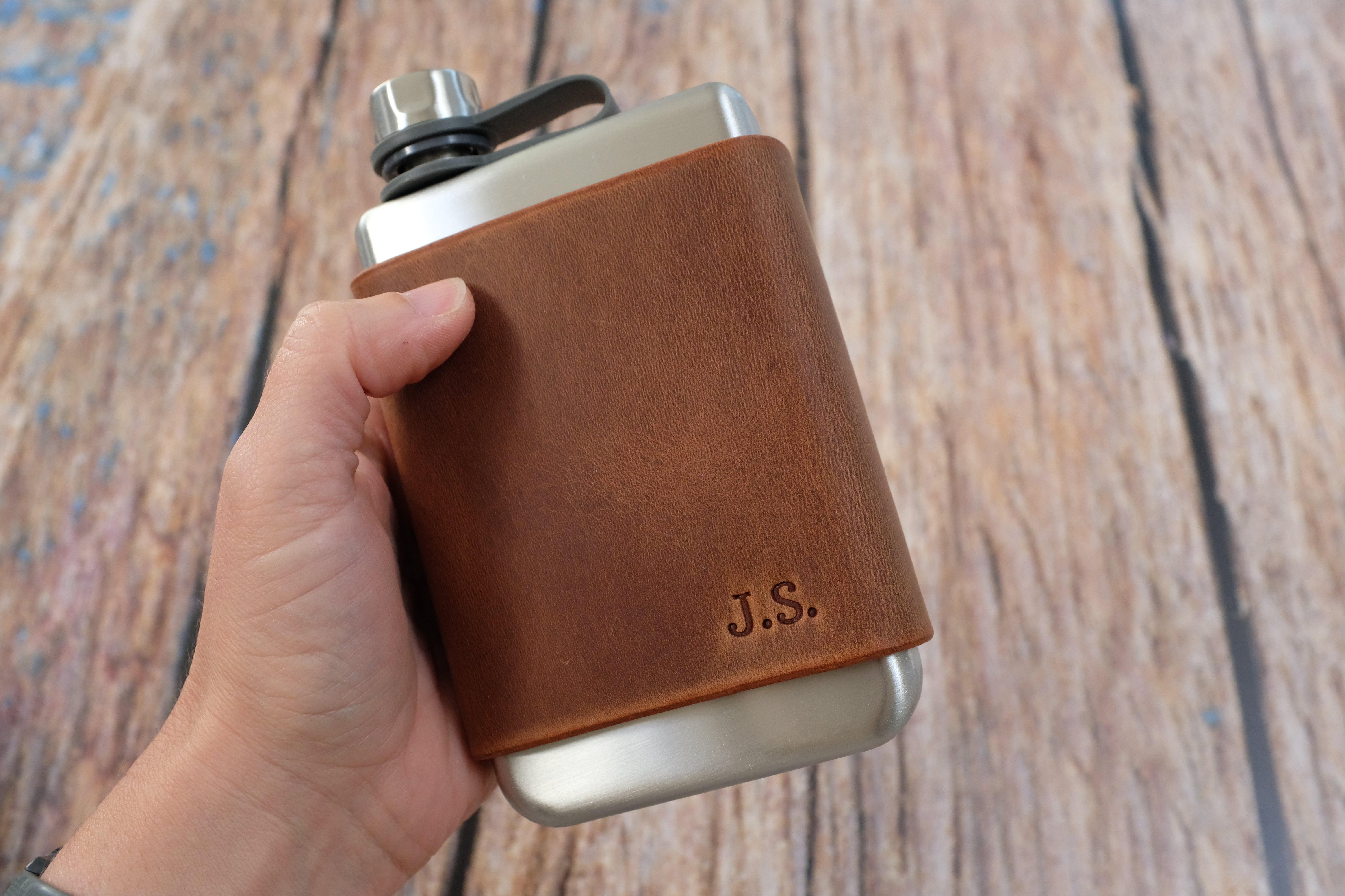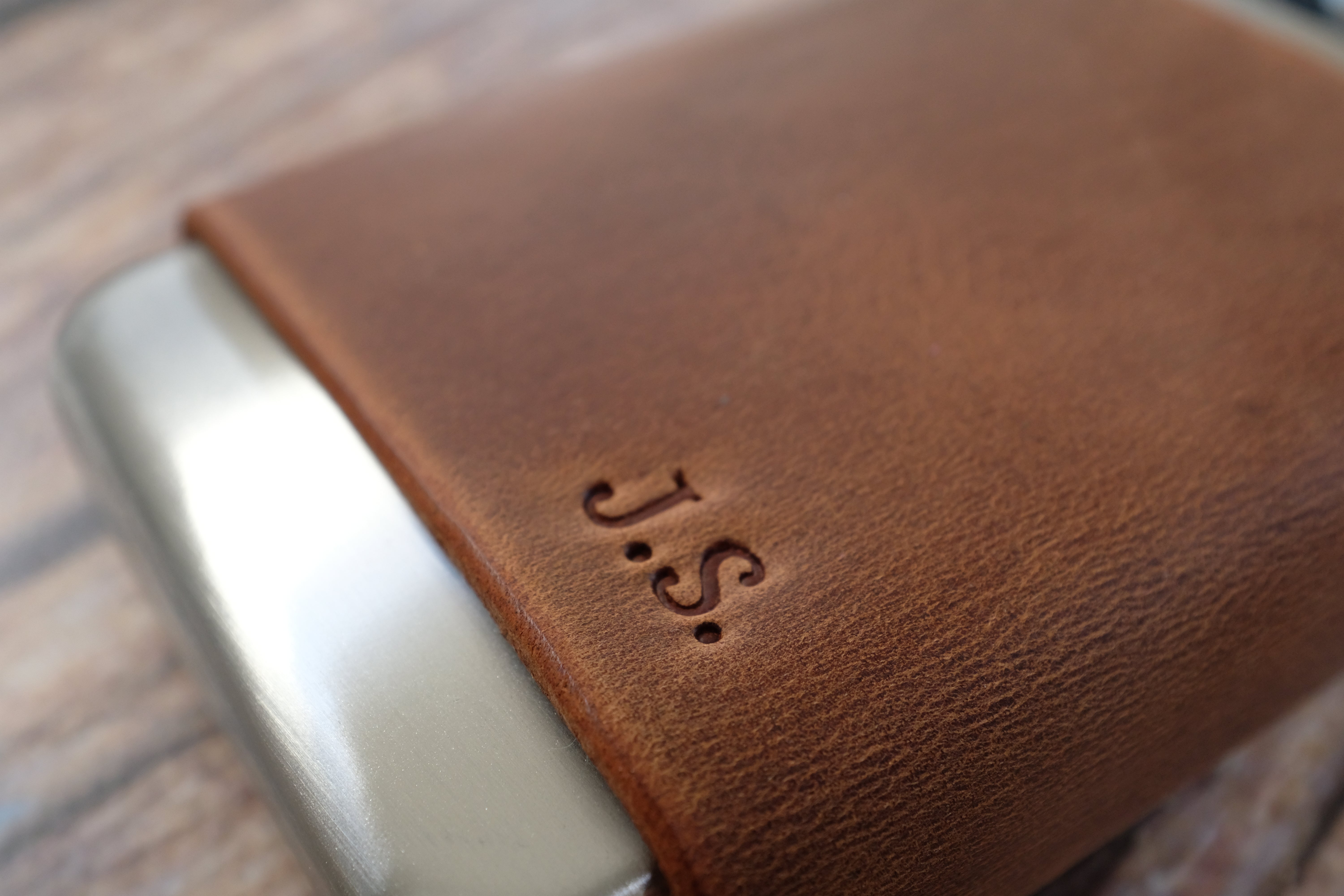 The leather is hand-cut, personalised with up to five initials, and finished with a neat, hand-stitched criss-cross seam running down the back — a small but deliberate detail that gives each flask its own character. The thread will colour match as closely as possible to the leather colour. Every stitch, mark, and edge speaks of the maker’s hand.